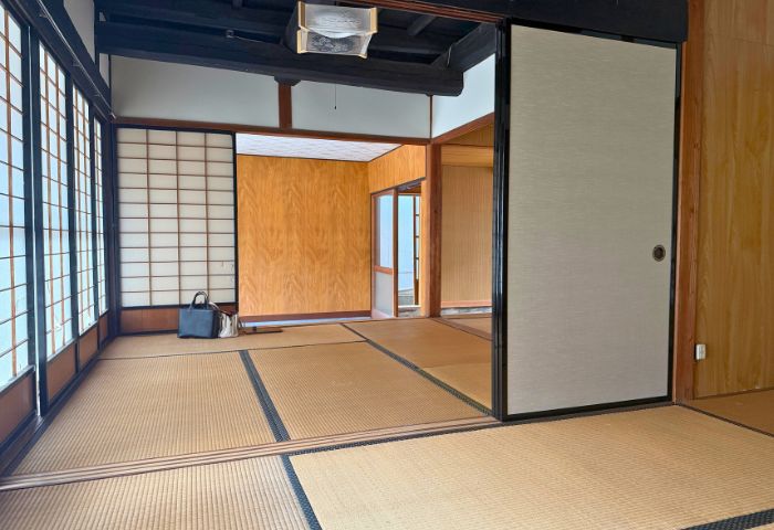 収納と階段を兼ねたこの造りは、現代の住宅ではほぼ再現不可能な古民家特有の意匠です。正面から撮ればサムネイル映えは確実。引きで撮っても、寄って撮っても“物語のある画”になります。